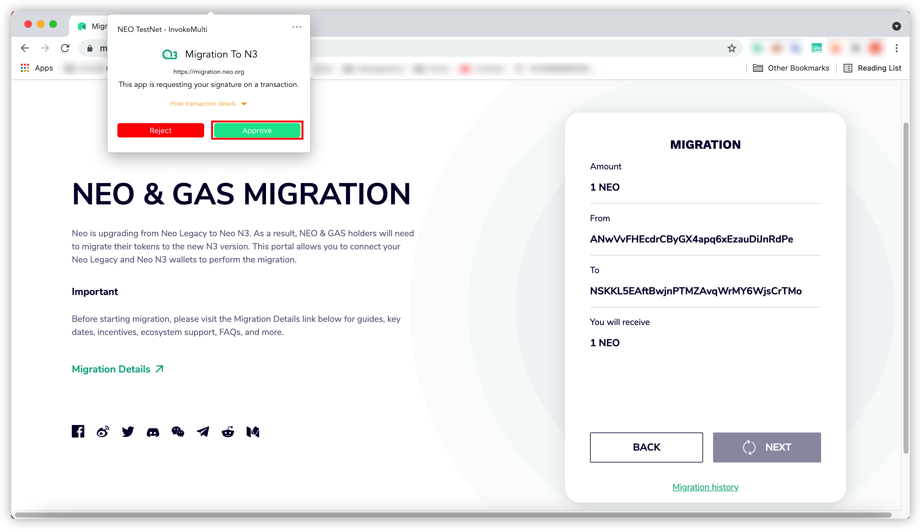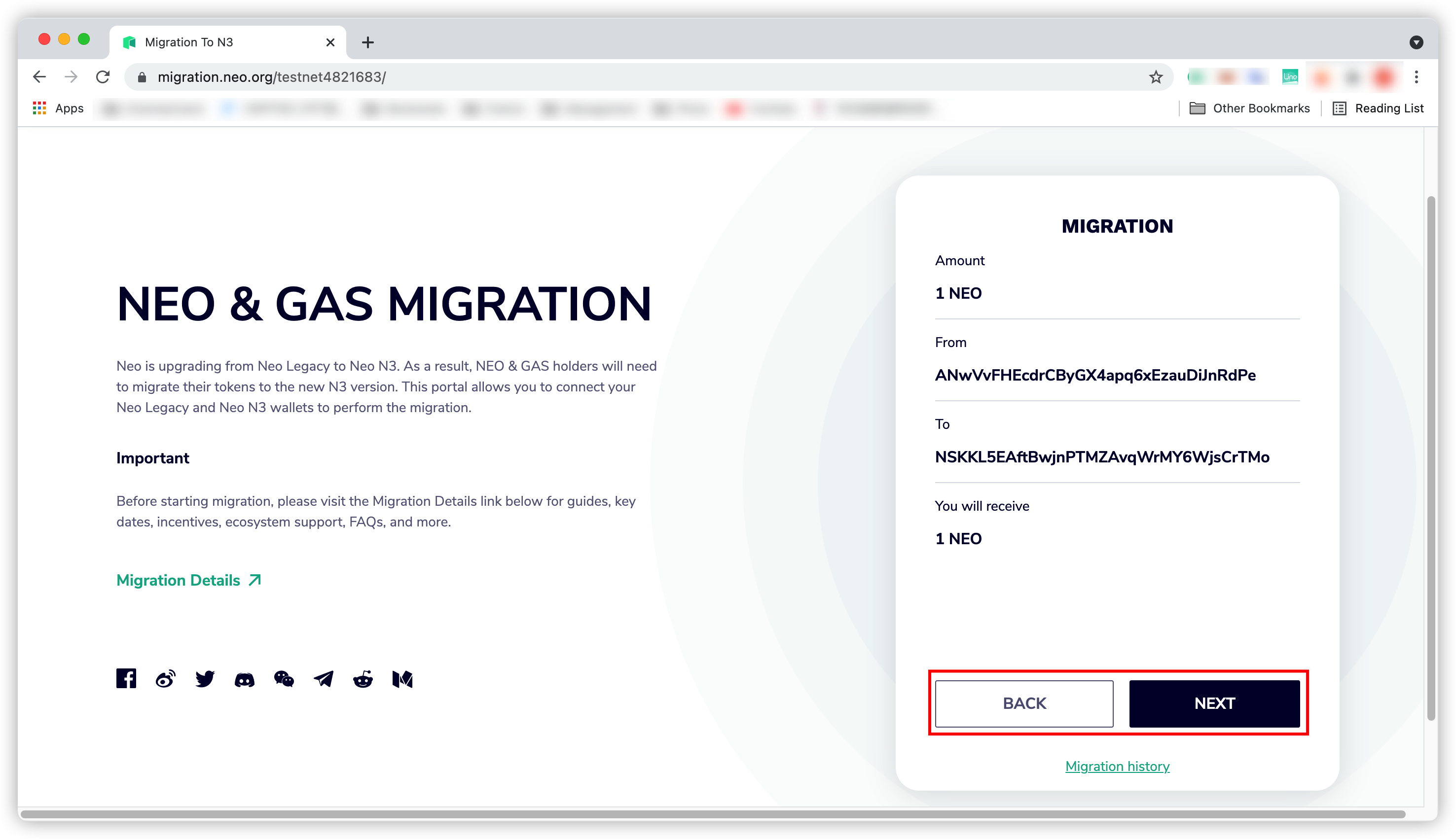 Create. A new Neo N3 wallet is successfully created.Go to the Migrate To N3 website. Click